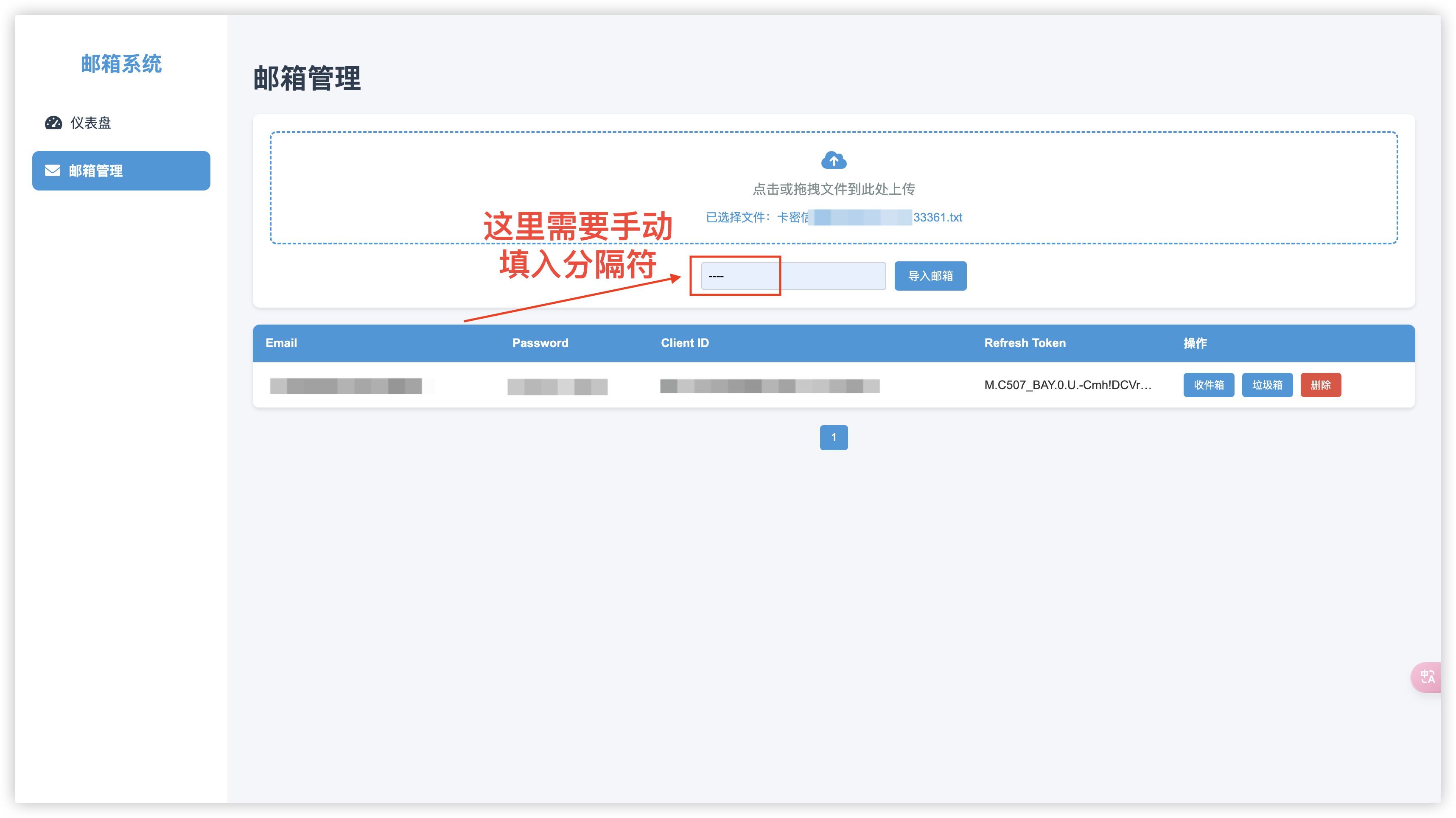 2. 界面化入口:oauth.882263.xyz/mail.html直接网页界面化取件,可以批量导入令牌号